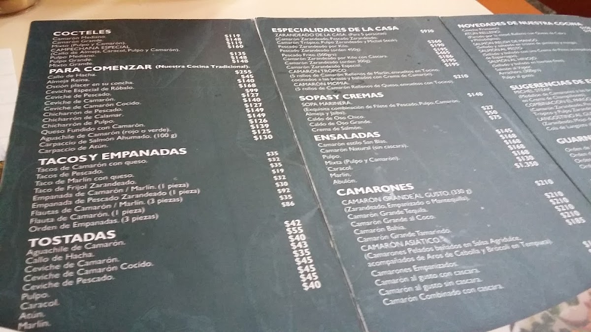 The menu showcases a variety of fresh seafood dishes, with highlights including their sumptuous ceviche, which serves three, priced at approximately $350 pesos. Diners rave about the garlic fish and grilled shrimp, both praised for their rich flavors and generous portions.